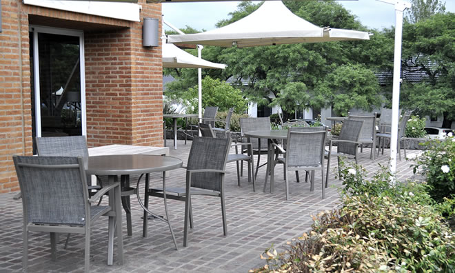 Sillas CROSS y Mesas SLAT para Complejo Altos de Belgrano