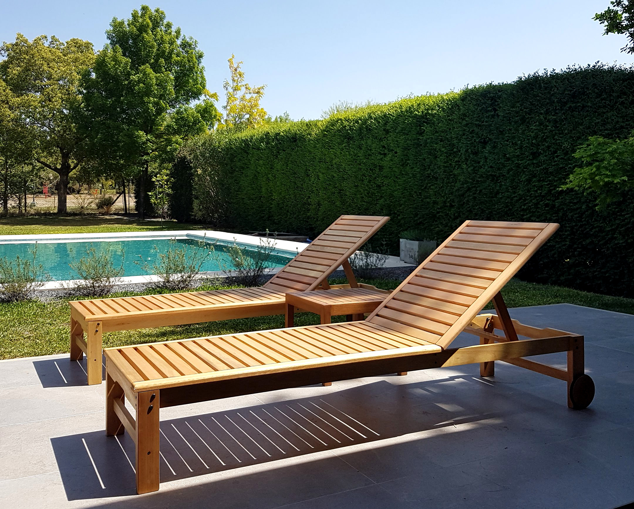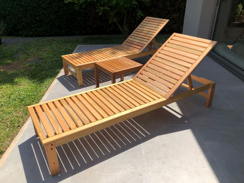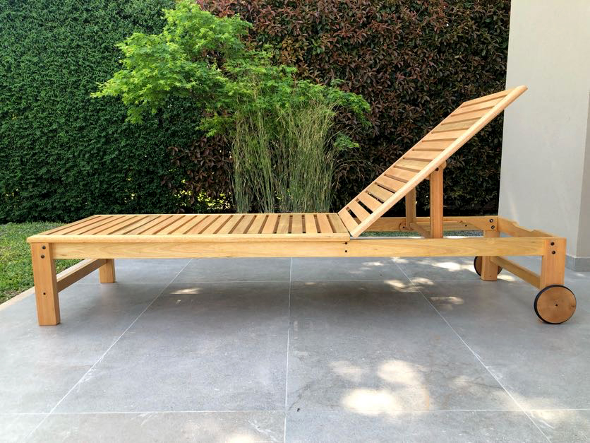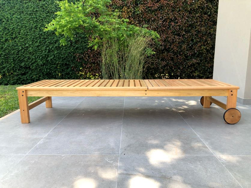 Reposera camastro de madera con ruedas. 4 posiciones.