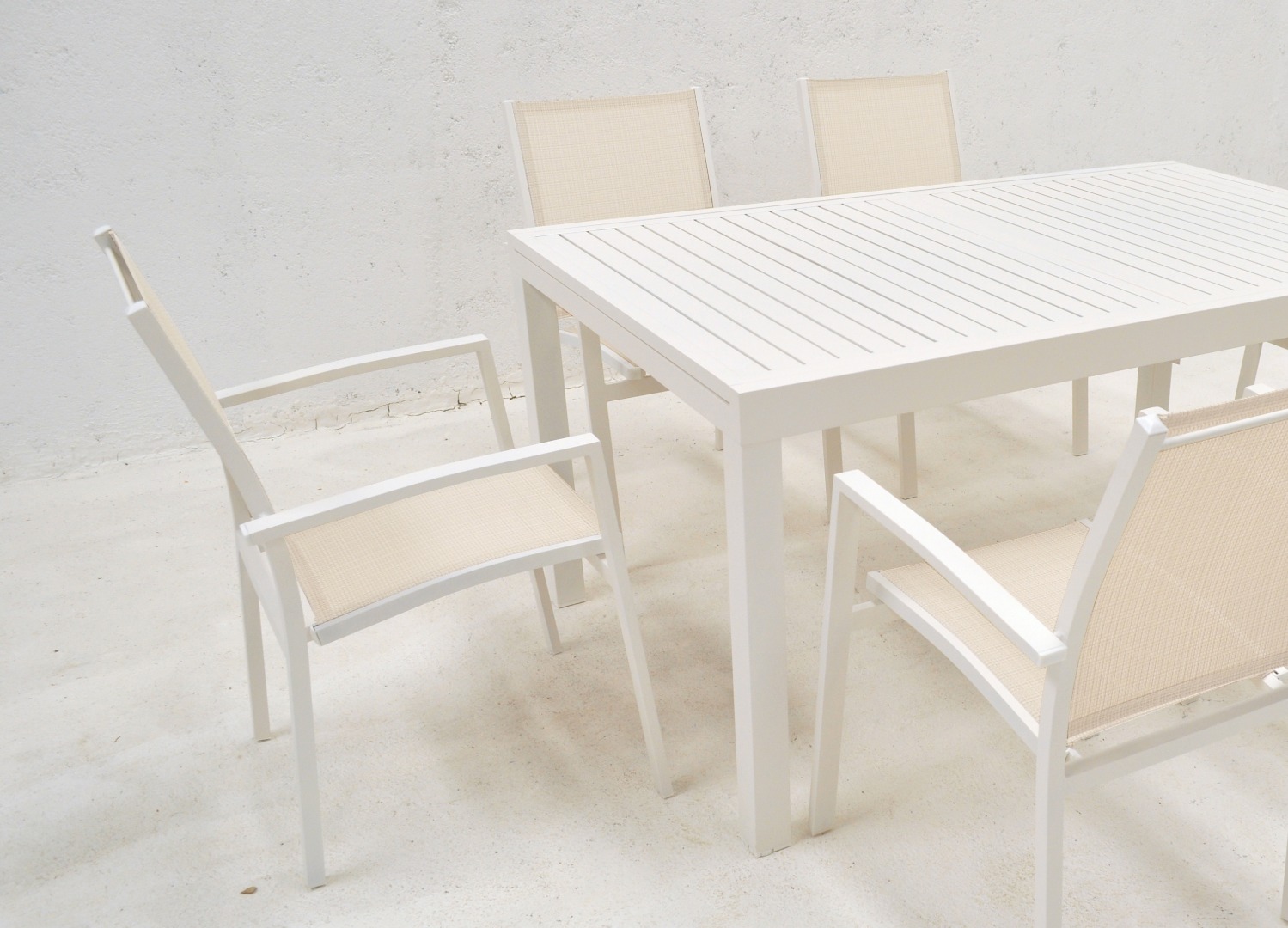 Sillón de aluminio para exterior con apoyabrazo. Estructura de aluminio con textilene.