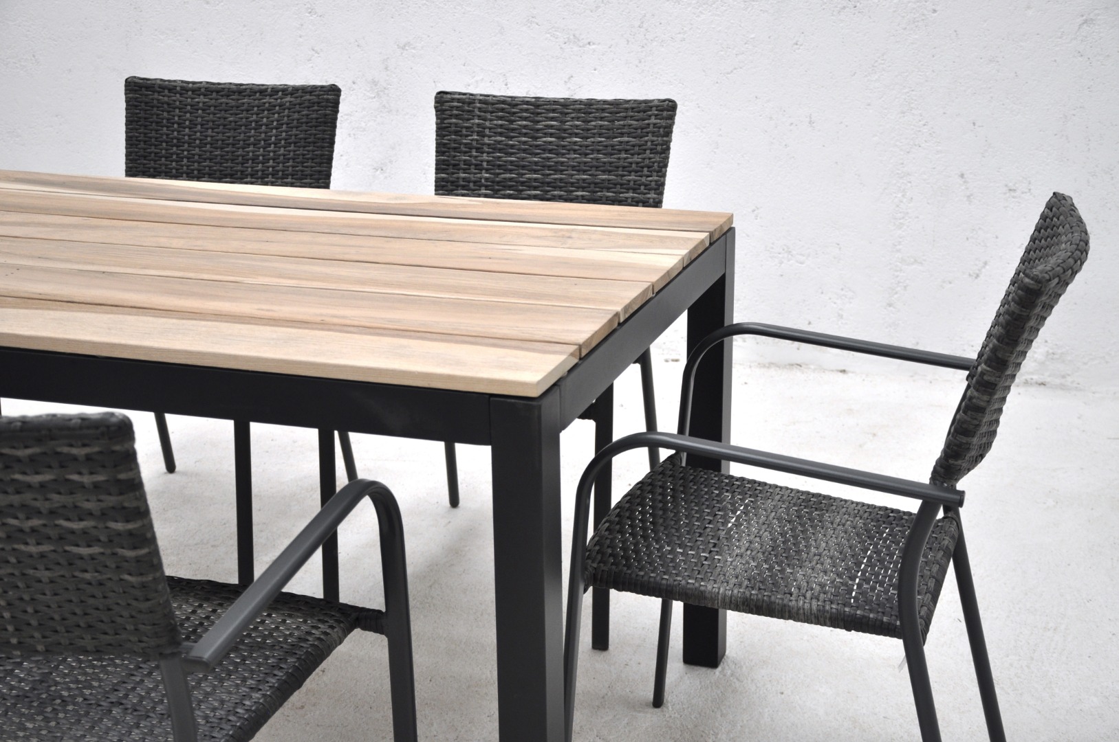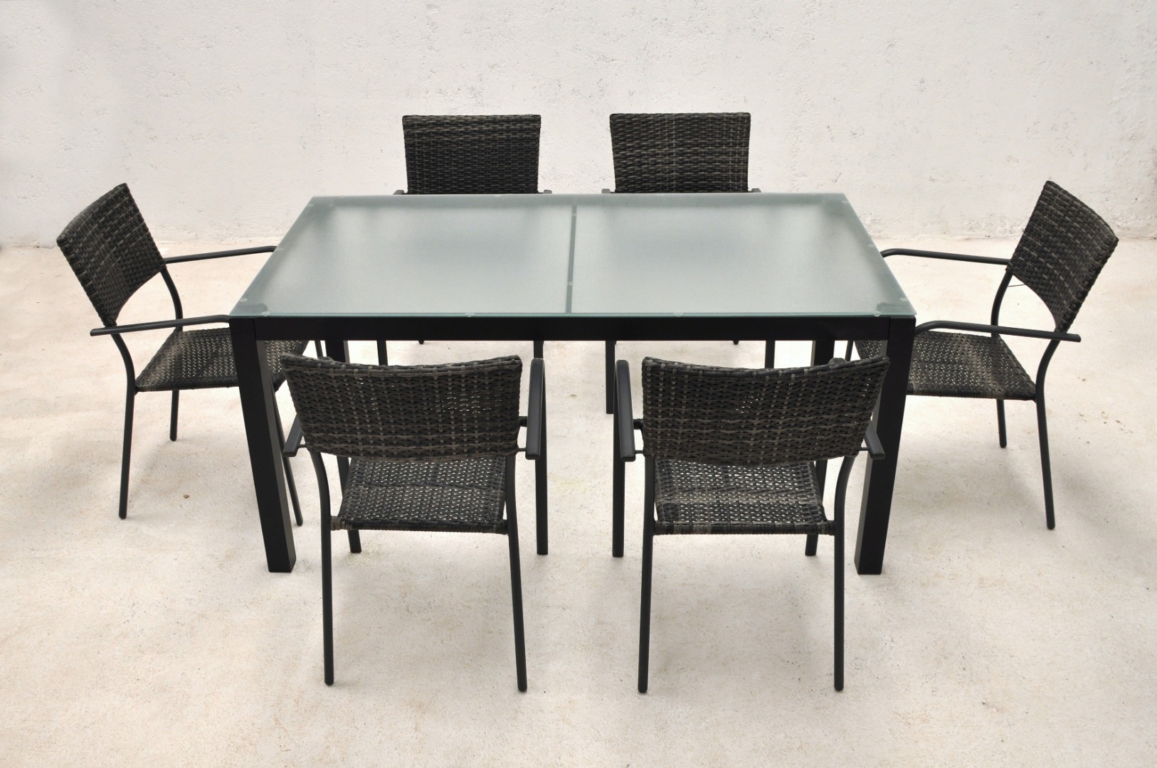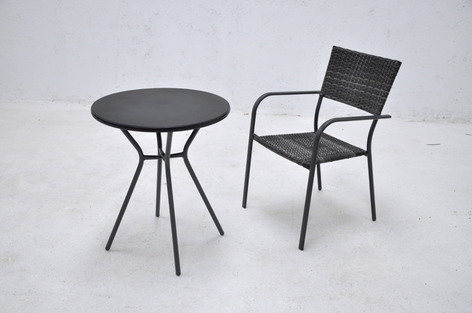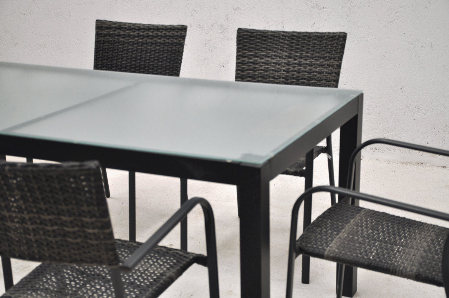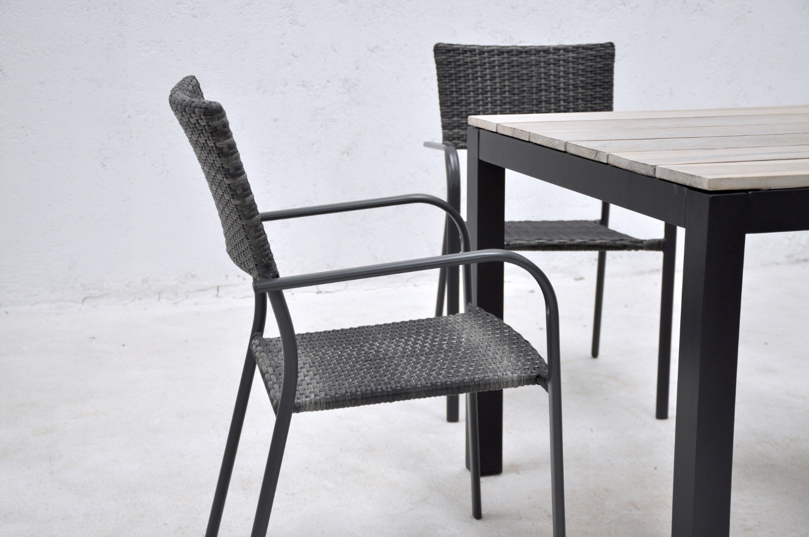 Sillón con estructura de acero con rattán sintético.